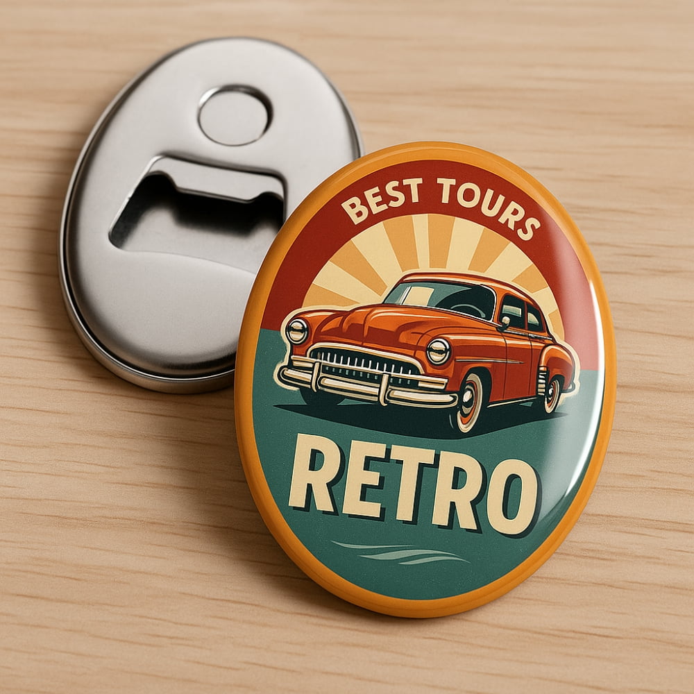 Chapita Destapador Imán Ovalada 60×90 mm – Modelo Línea Premium