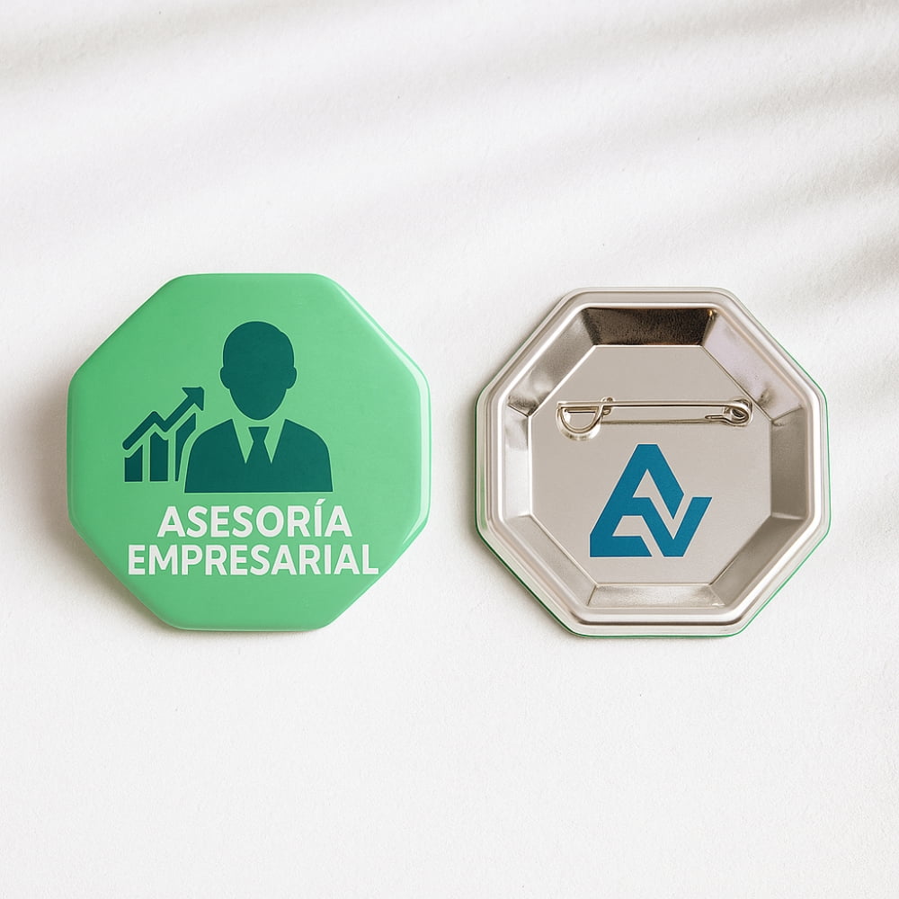 Con su forma octagonal y su diseño distintivo, la Chapita Alfiler Octagonal 58X58 mm, Modelo Línea Premium es la elección perfecta para quienes buscan un accesorio que combine elegancia, funcionalidad y originalidad. ¡Un producto exclusivo que dejará una impresión duradera y sofisticada!